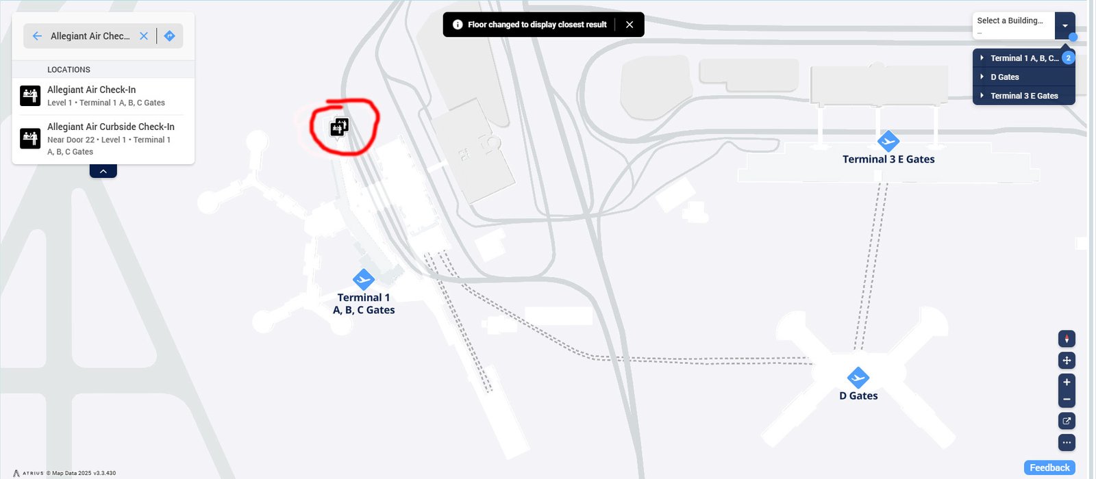 Terminal: Allegiant Air operates primarily from Terminal 1 (A, B, C, D Gates), with rare use of Terminal 3 for select flights (check boarding pass).