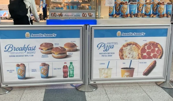 Cinnabon (founded 1985) and Auntie Anne’s (since 1988) are global snack legends. Their airport combos succeed thanks to fast service, portability, and crowd-pleasing flavors. At LAS, they’re a reliable comfort bite amid the Vegas chaos.