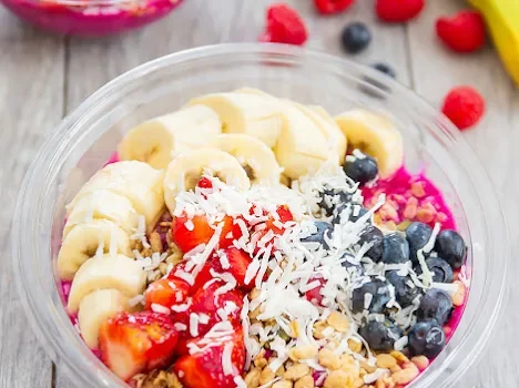 - Bowls: Açaí Primo, Island Pitaya, oatmeal with fresh fruit
