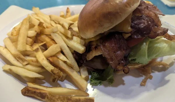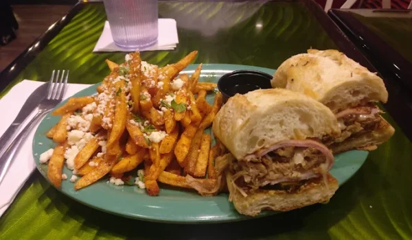 Popular picks include the Ahi Tuna Burger, Impossible Burger, Baja Mahi Mahi Tacos, and Cubano Sandwich. Vegetarians will enjoy the Beach Salad or plant-based options.