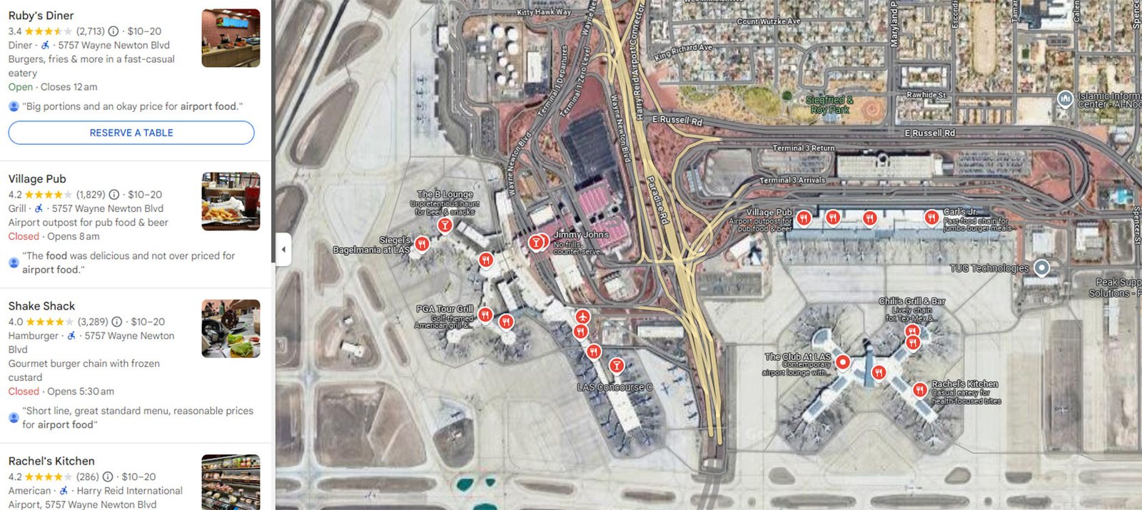 Whether you’re in the mood for a gourmet steak or a smoothie on the go, Terminal 3 offers a compact yet satisfying food scene. Use the LAS app for navigation, order ahead, and enjoy Vegas flavor before your flight.